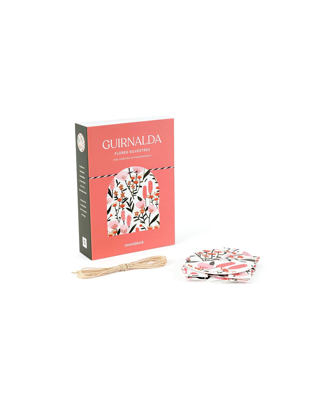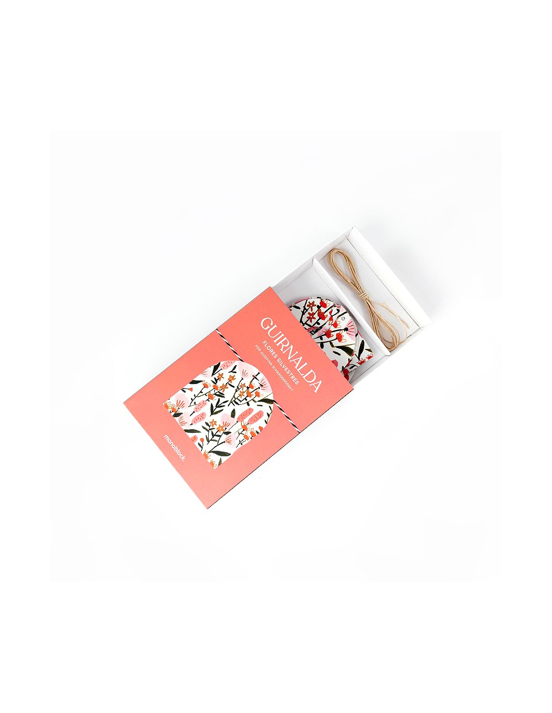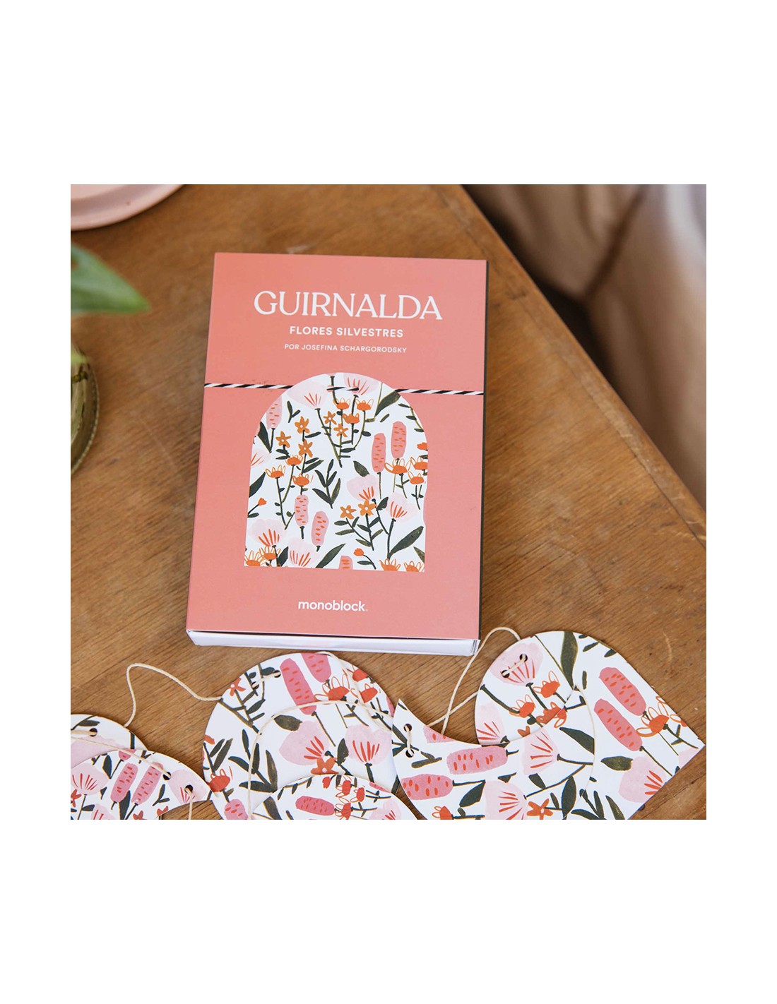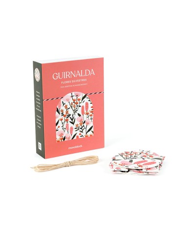 Esta guirnalda contiene 9 piezas de cartulina distribuidas a lo largo de 1,5 metros de largo y decorada con imágenes florales.
