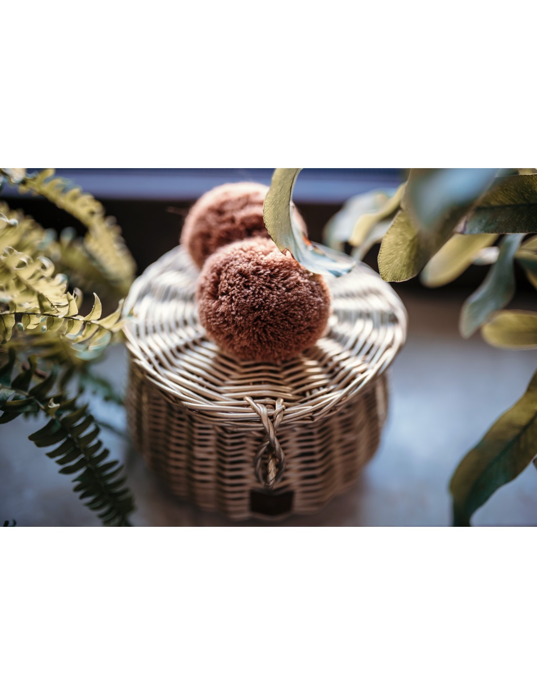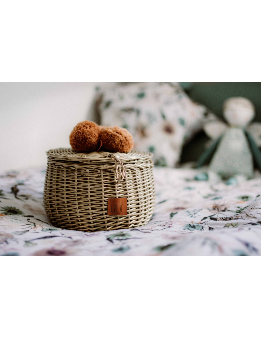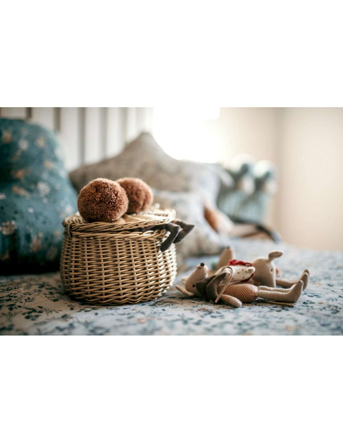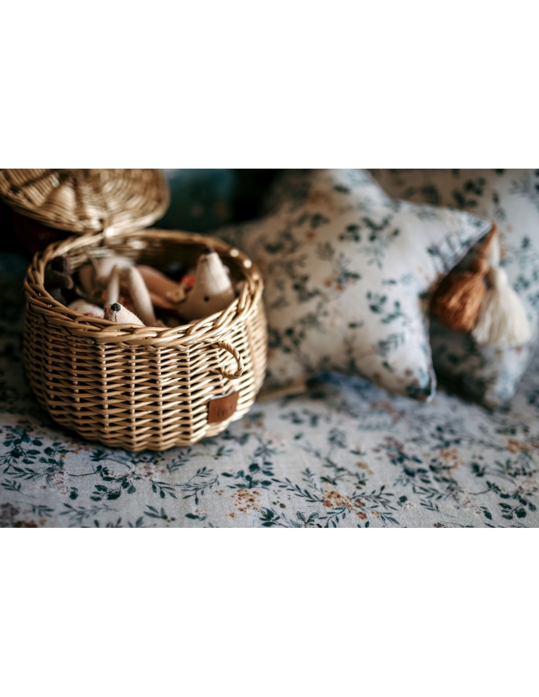 - Cesta de mimbre para guardar pequeños tesoros.