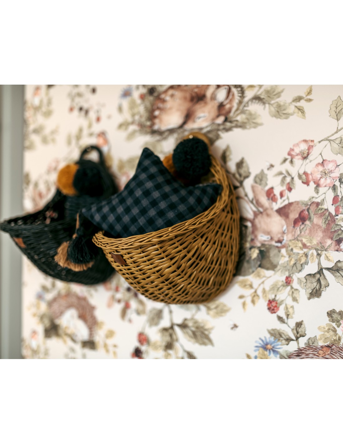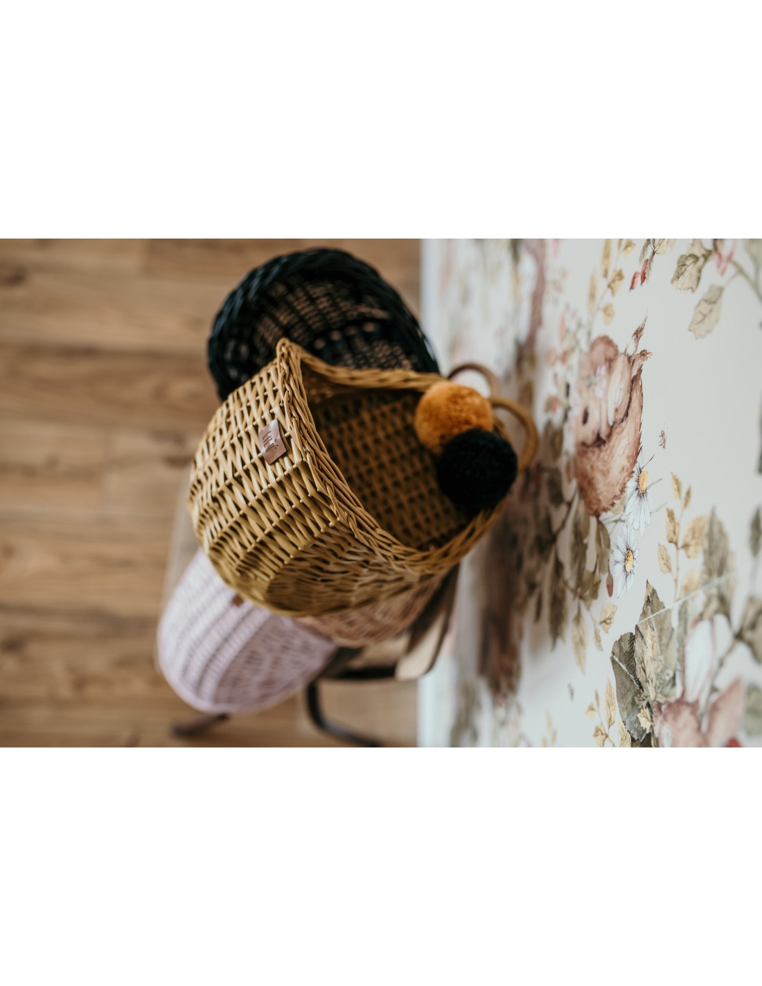 • Está decorada con dos pompones de color ocre que dan a la cesta un aire boho.