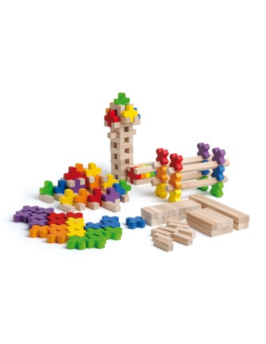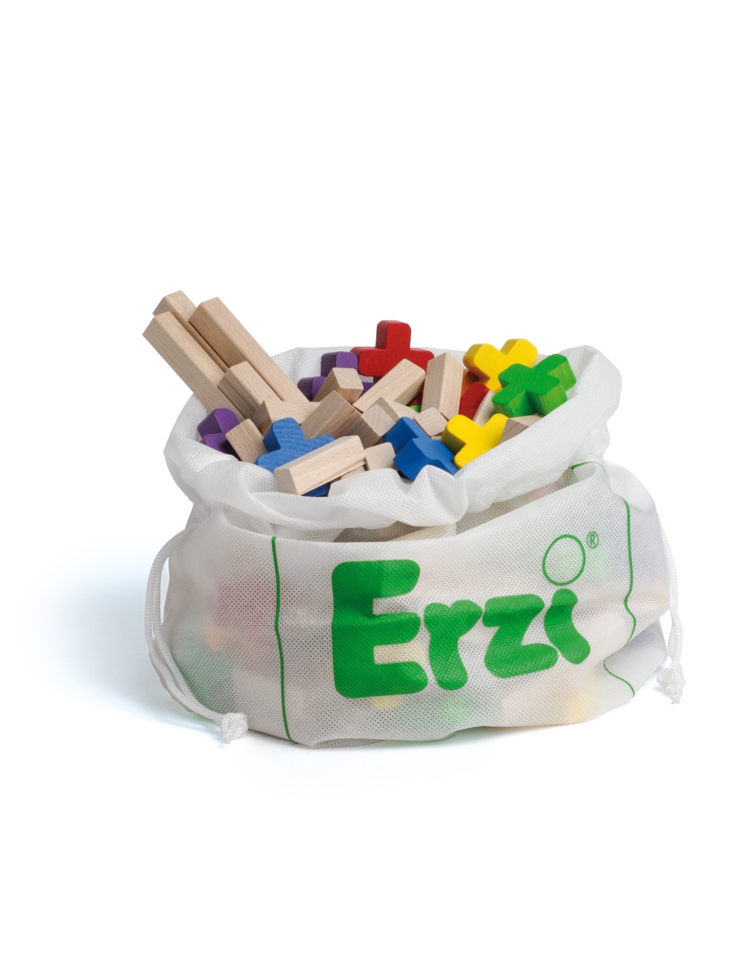Este juego de construcción ofrece un sinfín de posibilidades para jugar, explorar las leyes físicas y crear construcciones tanto en plano como en altura. Viene en una práctica bolsa de algodón para facilitar su almacenaje. Este juguete ha sido galardonado con el prestigioso sello de calidad Spiel Gut.