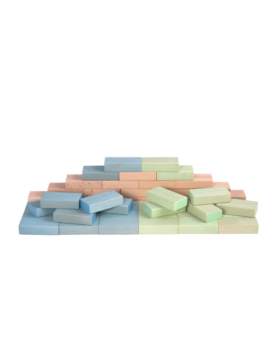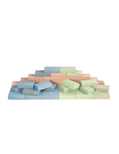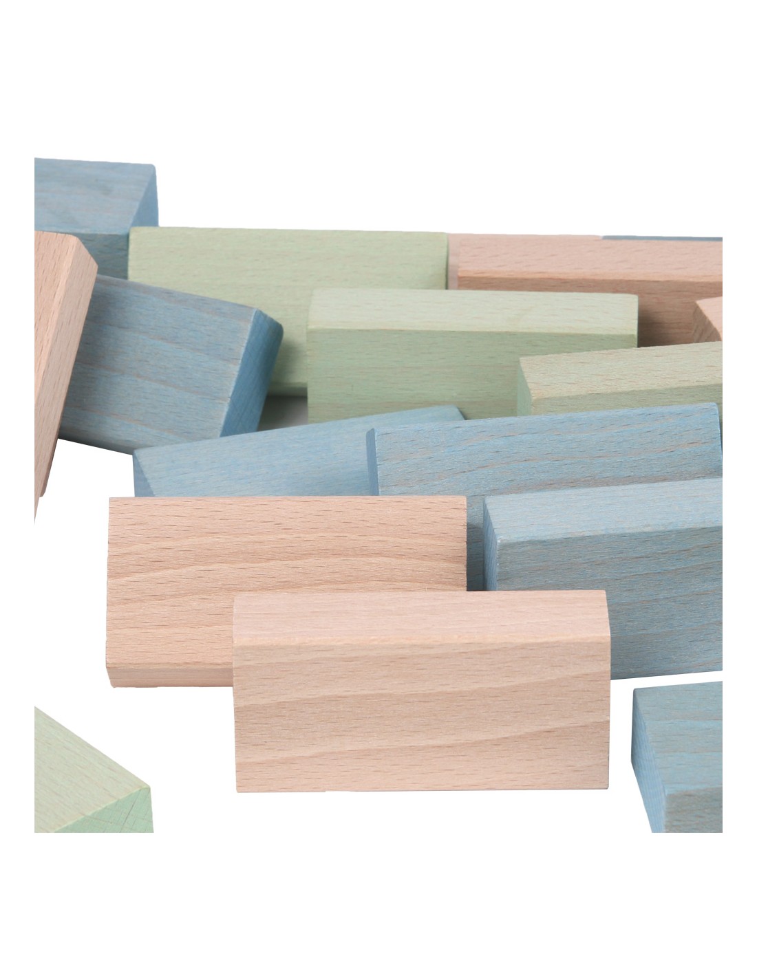 Este conjunto de bloques de madera contiene 48 piezas de colores azul y verde pastel y madera natural.