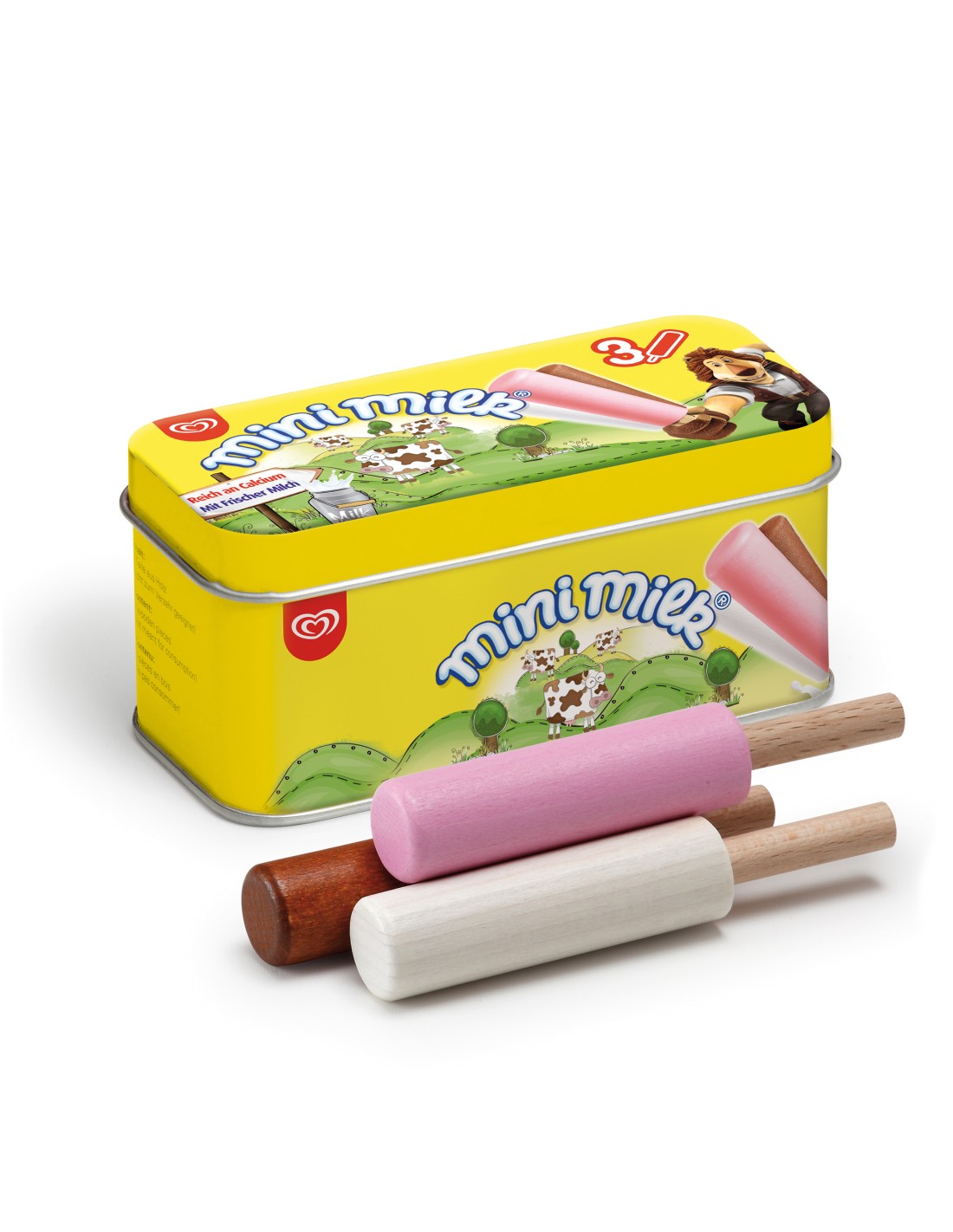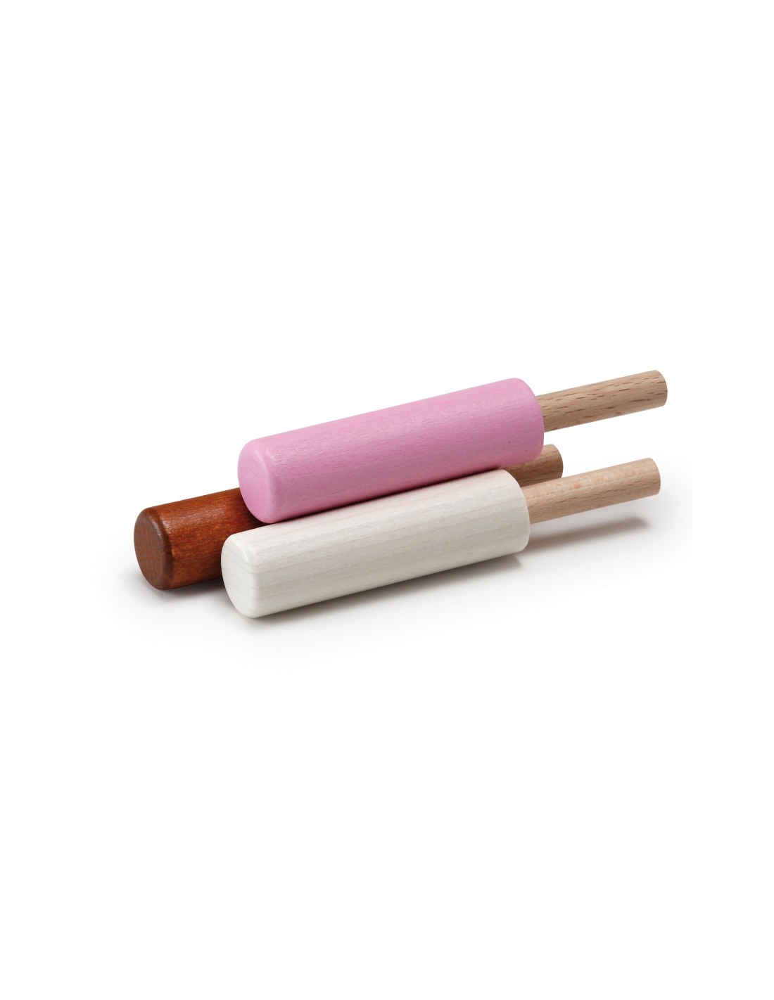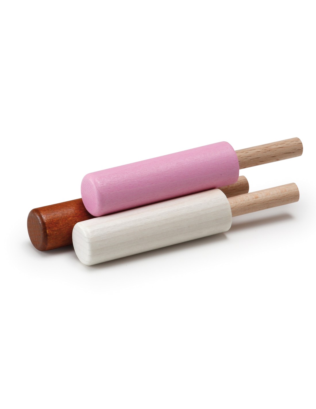 3 helados minimilk de madera para utilizar durante el juego simbólico.