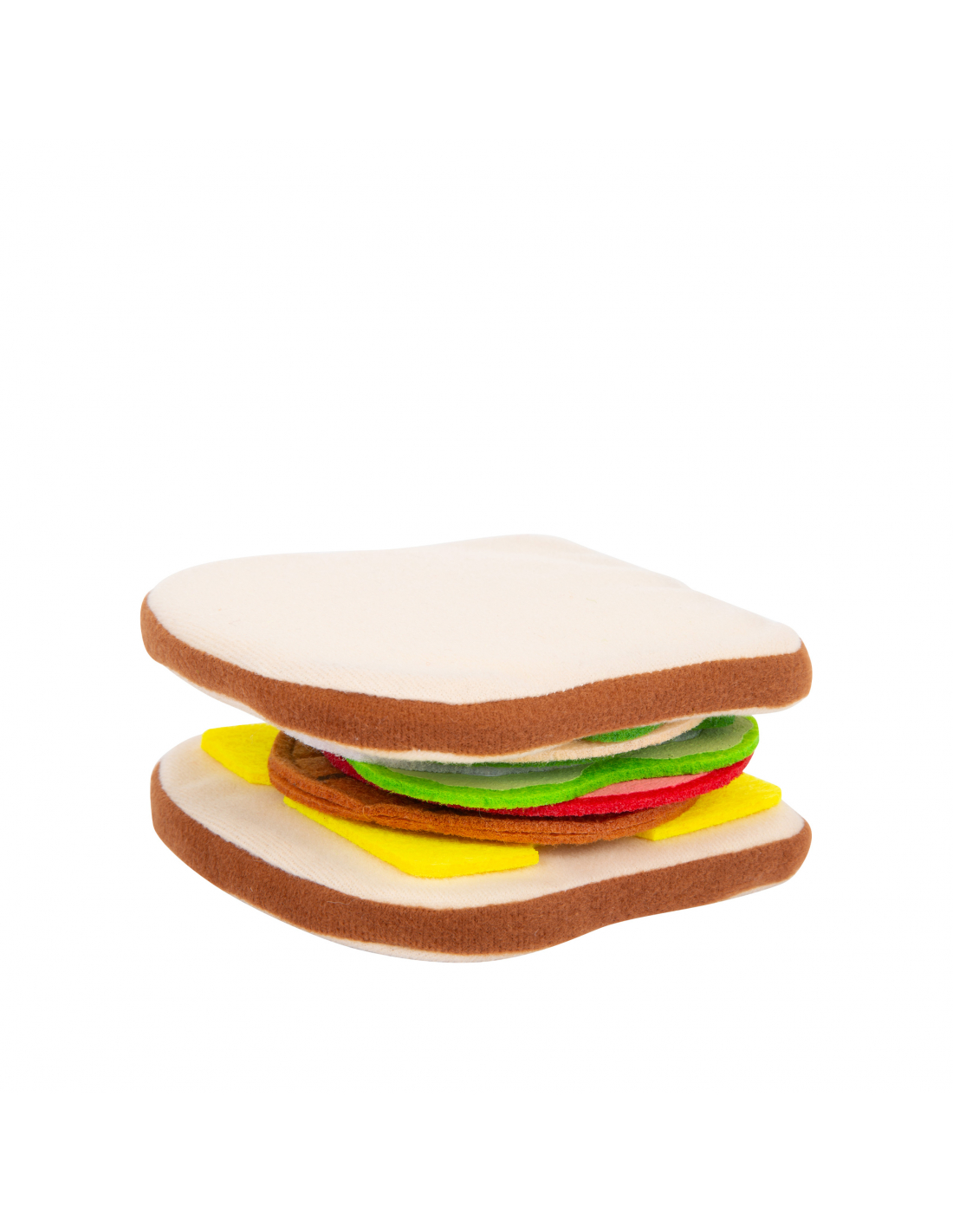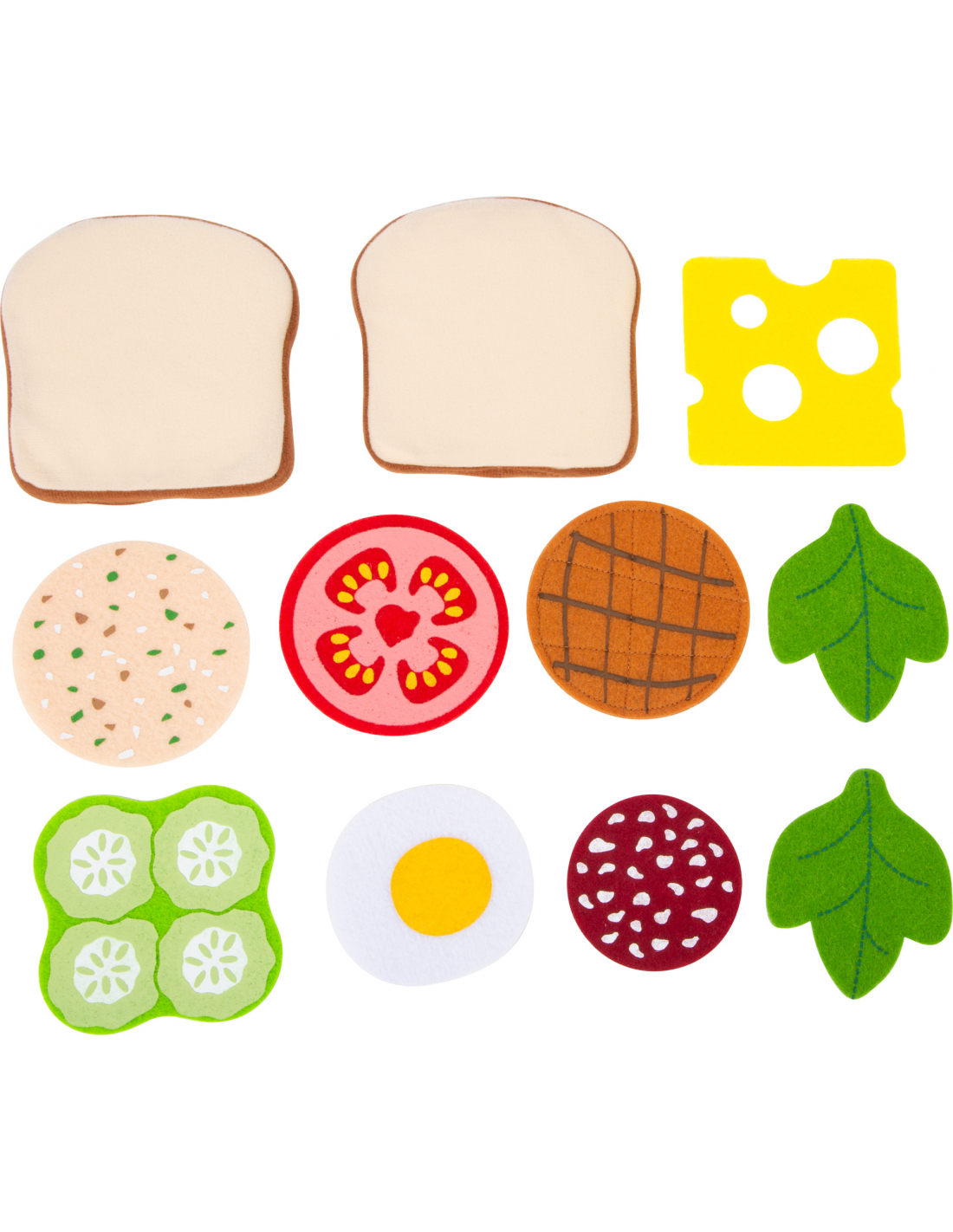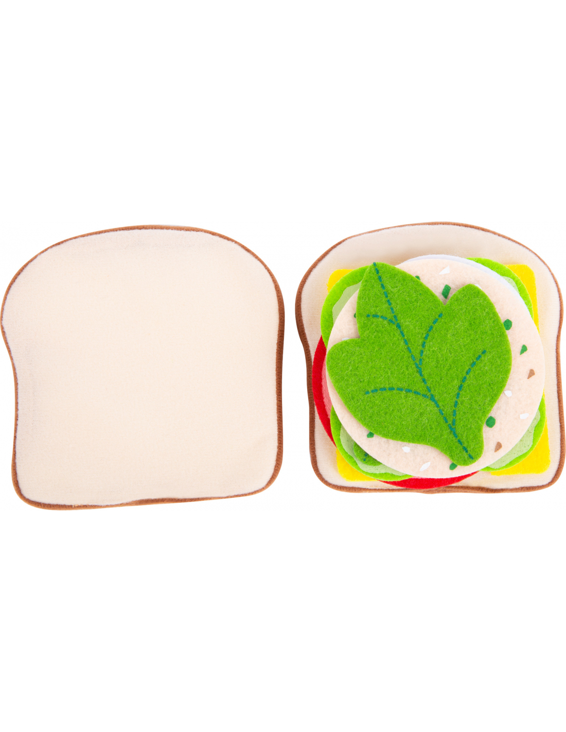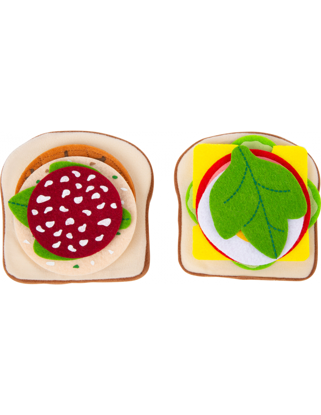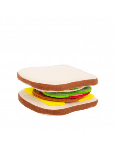 Un detalle particularmente práctico: gracias a la superficie rugosa del fieltro todo se mantiene en su lugar y el sándwich no se desmonta. ¡Este set de alimentos de fieltro es ideal para la cocina de los niños, la tienda o la cesta de picnic! Mientras preparan una sabrosa merienda, los niños desarrollan sus motricidad fina en un juego simbólico.