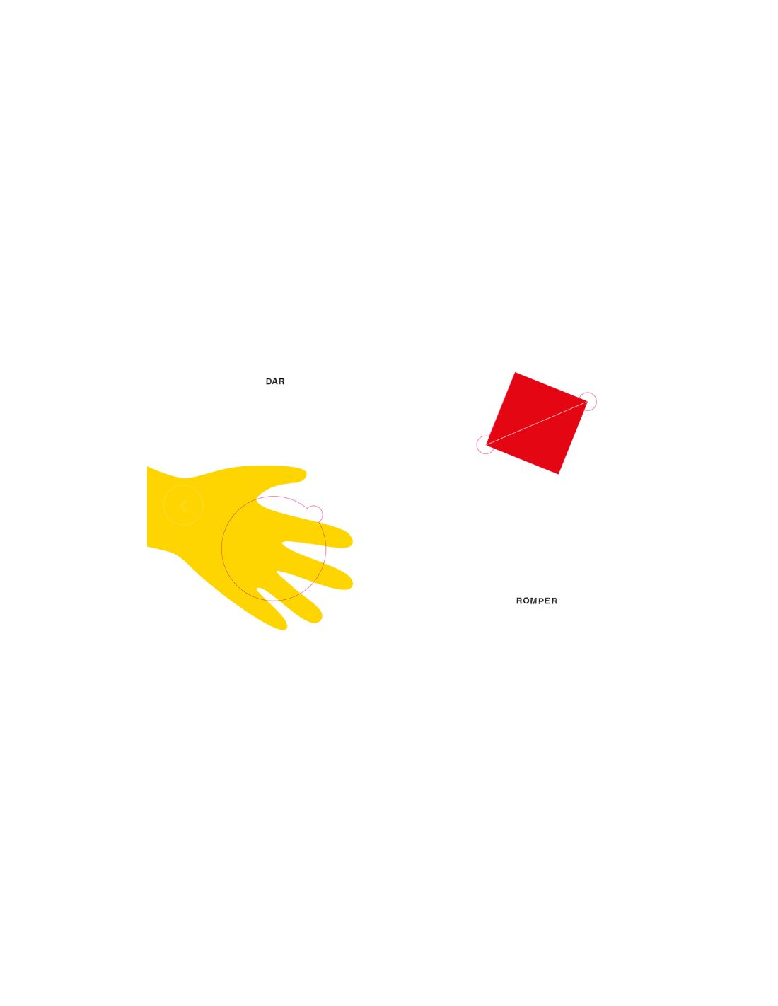- Por ejemplo, en la primera hay que "tomar" la redonda roja, girar la página y "dar" la redonda a la mano que hay extendida.