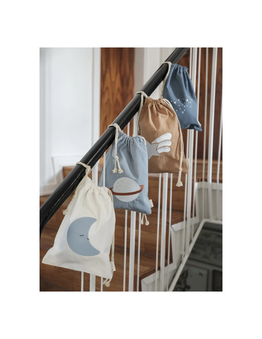 - Bolsita de algodón orgánico bordada con hilo de poliéster.