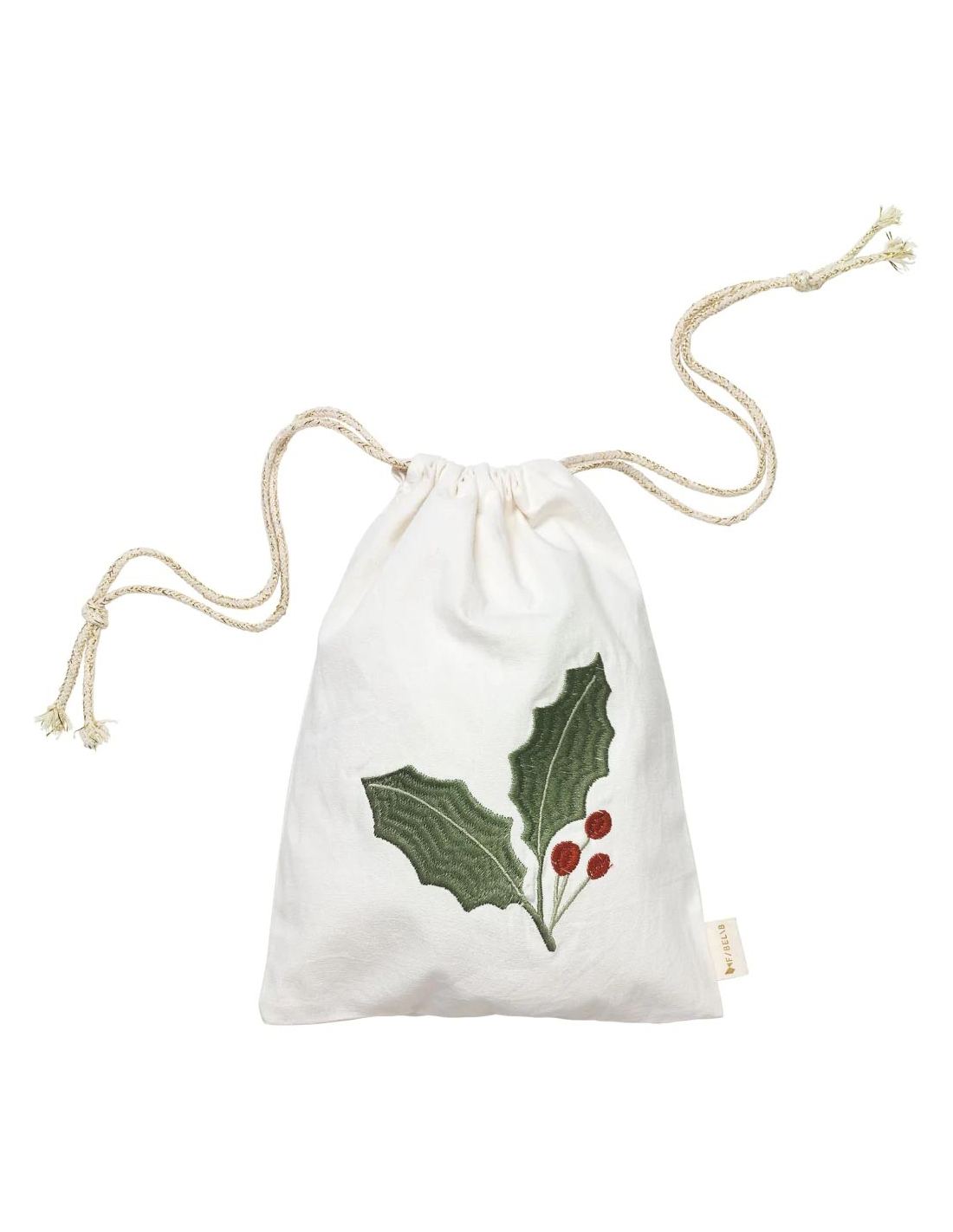 Envuelve tus regalos de forma sostenible con esta bolsita de algodón bordada.