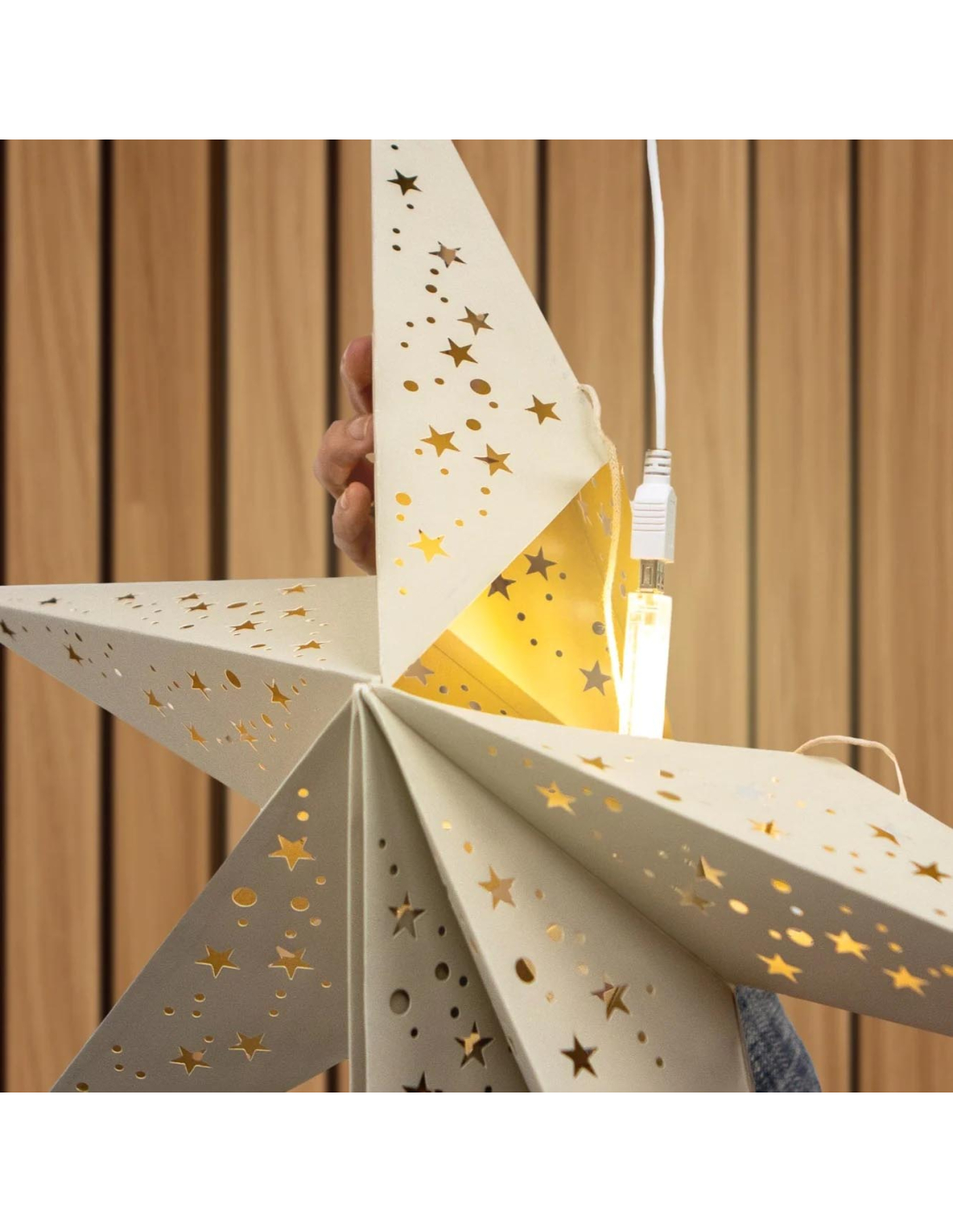 - Su equilibrio perfecto entre luz cálida y brillante luminiscencia, realzan el color y diseño de las estrellas de papel, mostrándolas con todo su potencial.