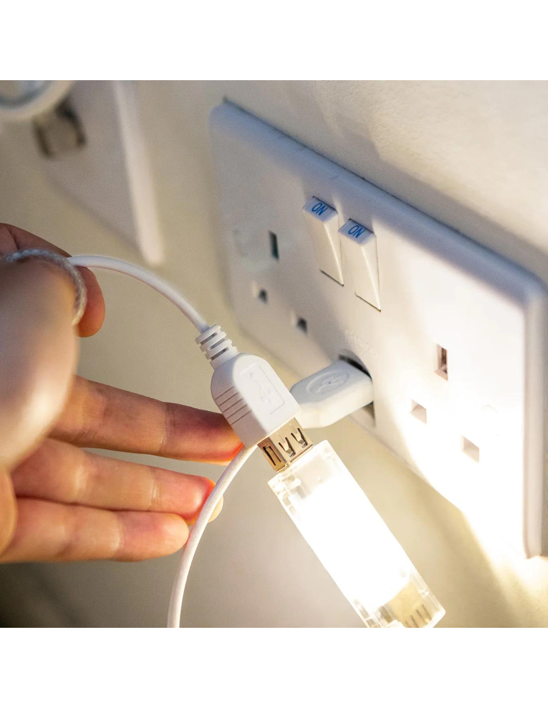- Tiene un cable USB de 4 metros de largo, lo que permite colocar la fuente de iluminación dentro de la lámpara y tener mucha longitud de cable para poder poner la lámpara en el mejor lugar.