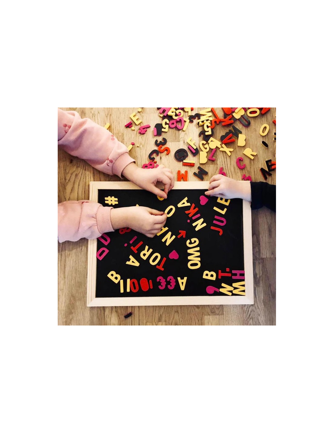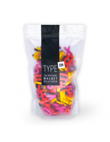 - Estos modernos y elegantes caracteres son perfectos para decorar cualquier superficie magnética pero para el juego recurrente de los niños es recomendable utilizar la pizarra magnética de la misma marca Type Oh!, cuyo tamaño, peso y usabilidad son los idóneos.