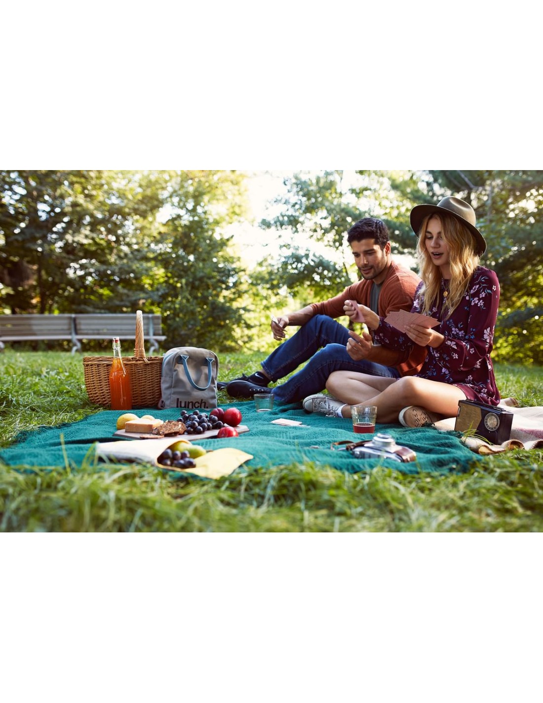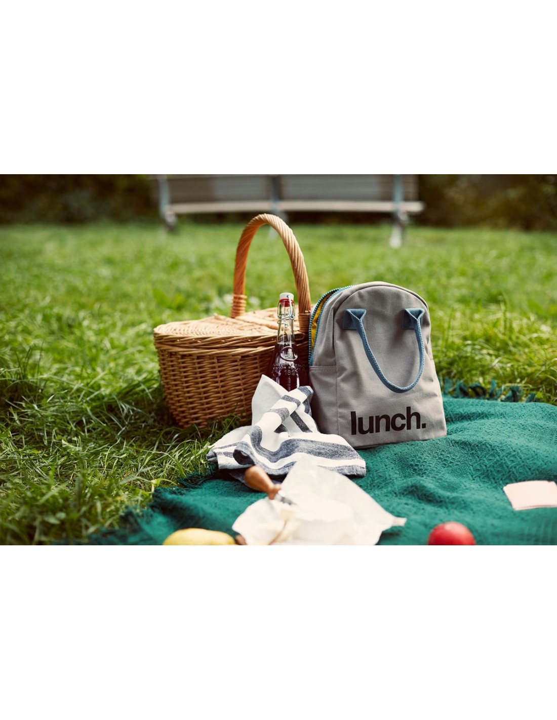 Esta bolsa de almuerzo grande y espaciosa tiene un forro apto para alimentos que se puede enjuagar en caso de derrames. Es totalmente lavable a máquina. Tiene un bolsillo interior para una botella de agua o una bolsa de hielo. Está fabricada de manera sostenible y ética con materiales orgánicos y reciclados. Se puede plegar y no ocupa espacio.