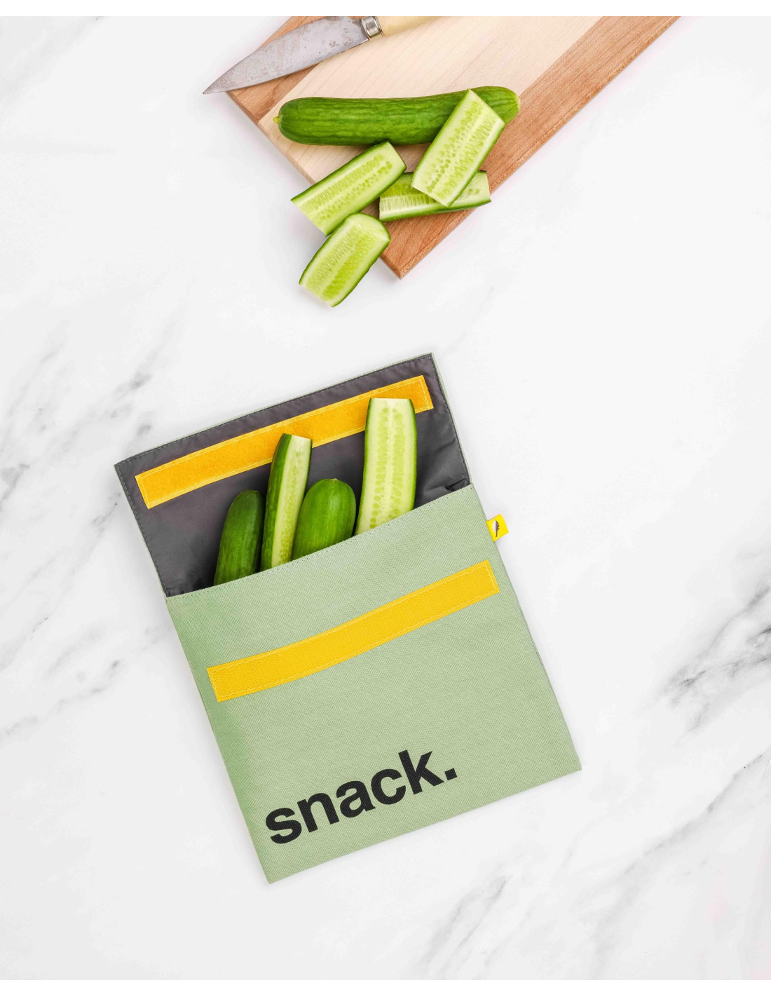 Esta simpática bolsa de comida reutilizable es adecuada tanto para niños y como para adultos. Tiene un cierre de velcro y es totalmente lavable a máquina y fácil de limpiar. El forro del interior es apto para alimentos. Esta bolsa está fabricada de manera sostenible y ética con materiales orgánicos y reciclados. Es una solución perfecta para no utilizar otros envoltorios que dañan el medio ambiente.