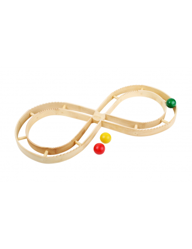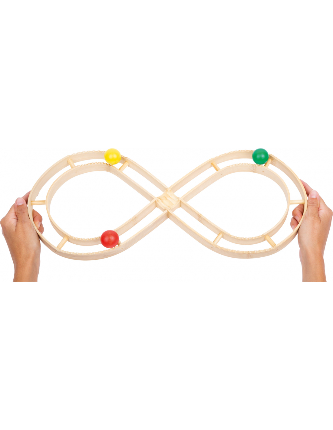 Este juego hecho de bambú está pensado para educar la motricidad de ojos y manos, la vista periférica y la coordinación derecha-izquierda.