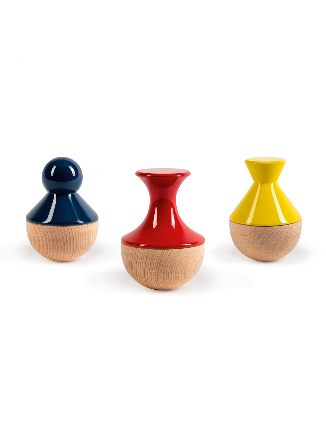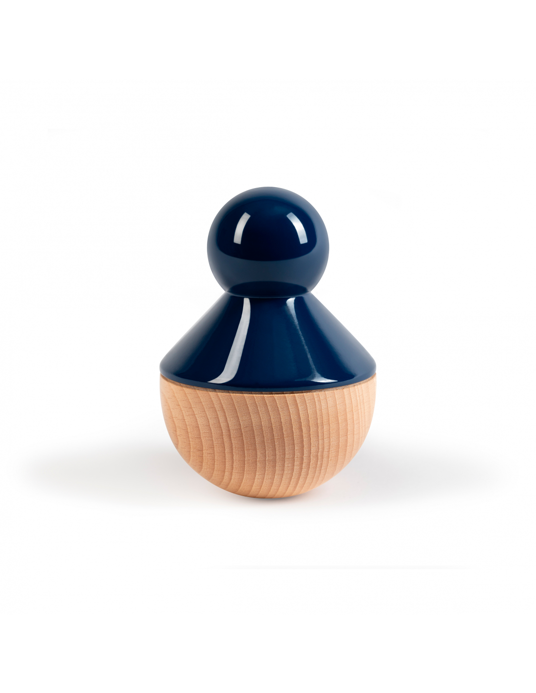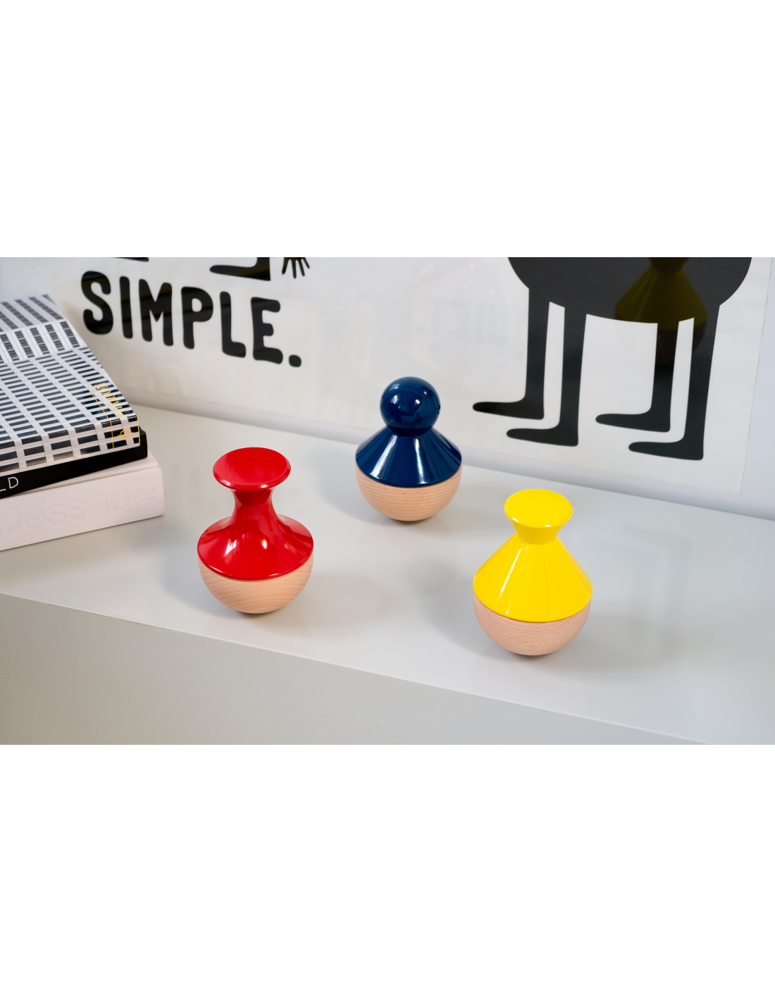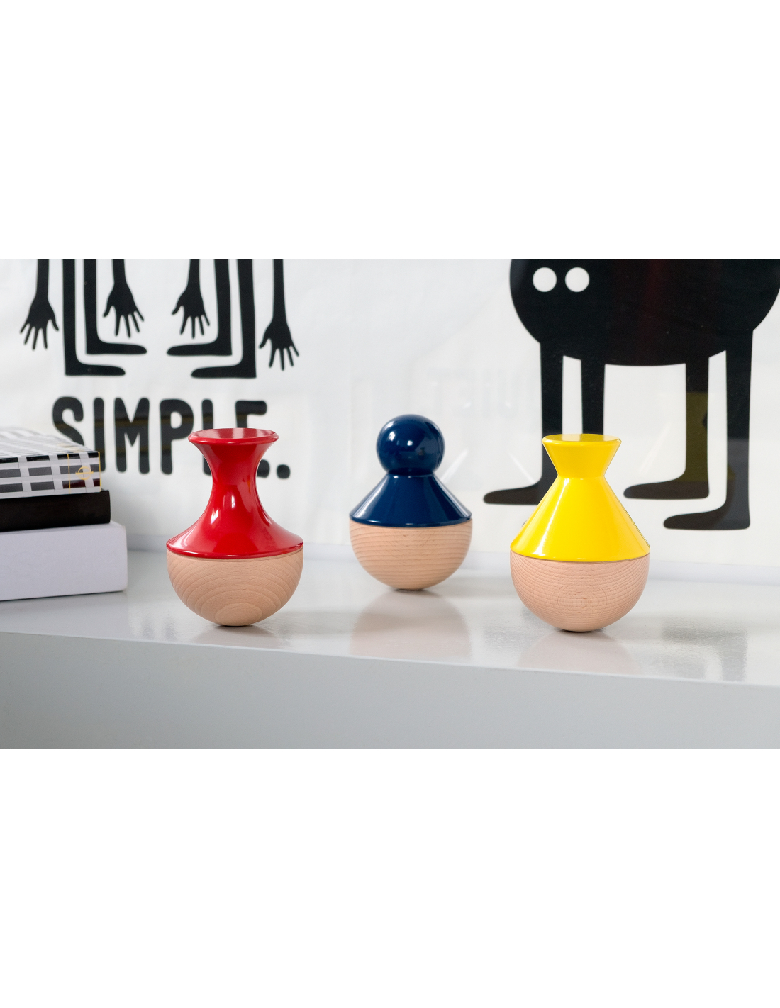 Si recibe un empujón, se balancea hacia atrás y encuentra el camino de regreso a una posición vertical por sus propios medios. Su movimiento de balanceo es alegre y nos anima a superar retos y a levantarnos siempre.