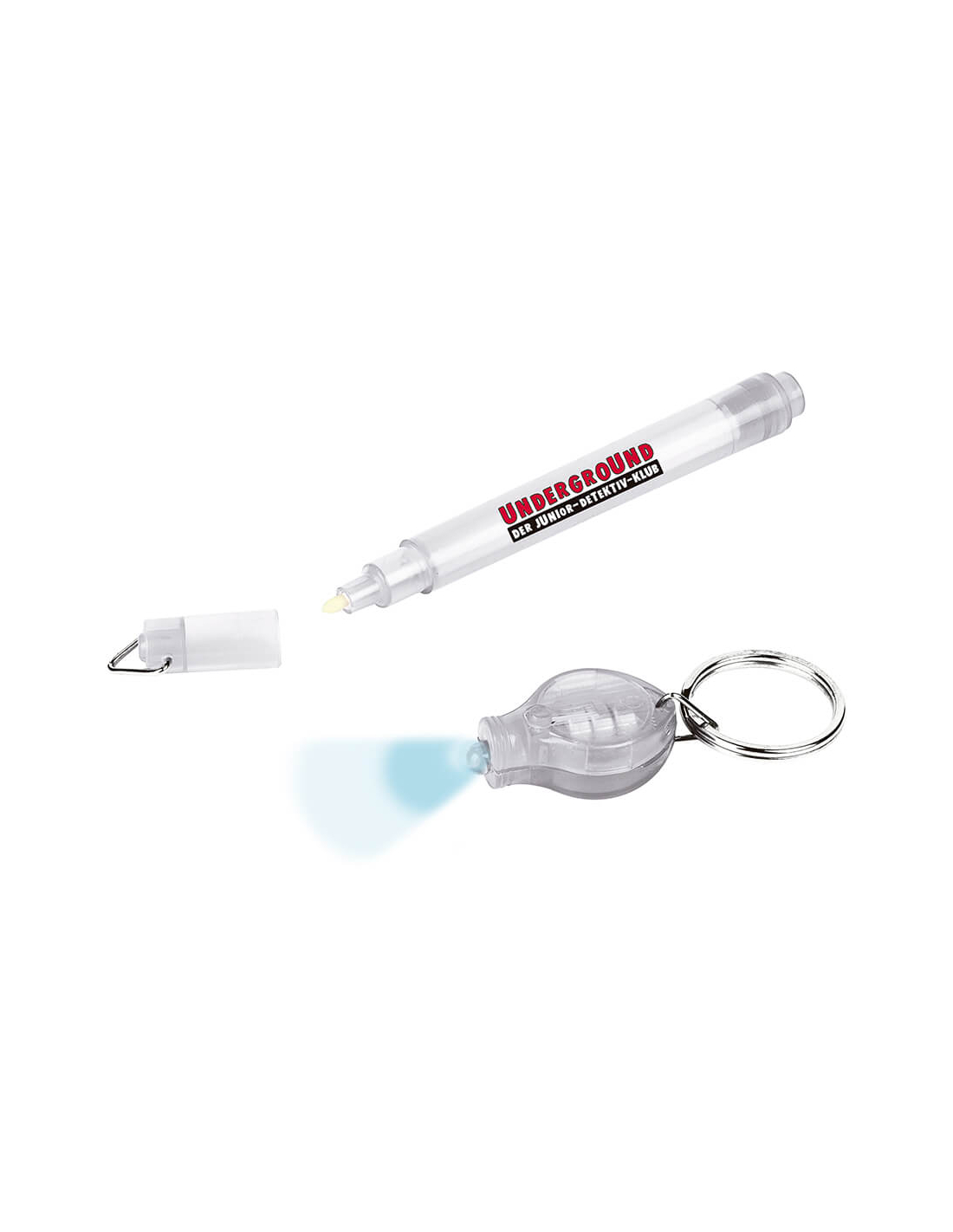 - Para ver el mensaje escrito hay que iluminar la superficie con la pequeña linterna que viene incluida.