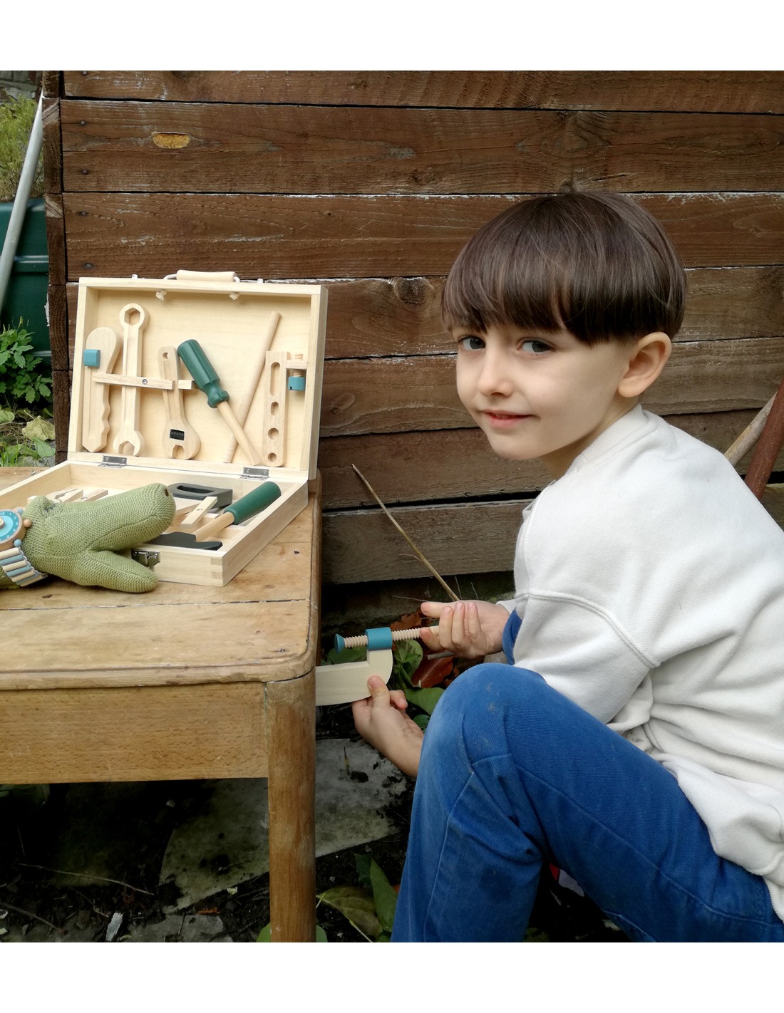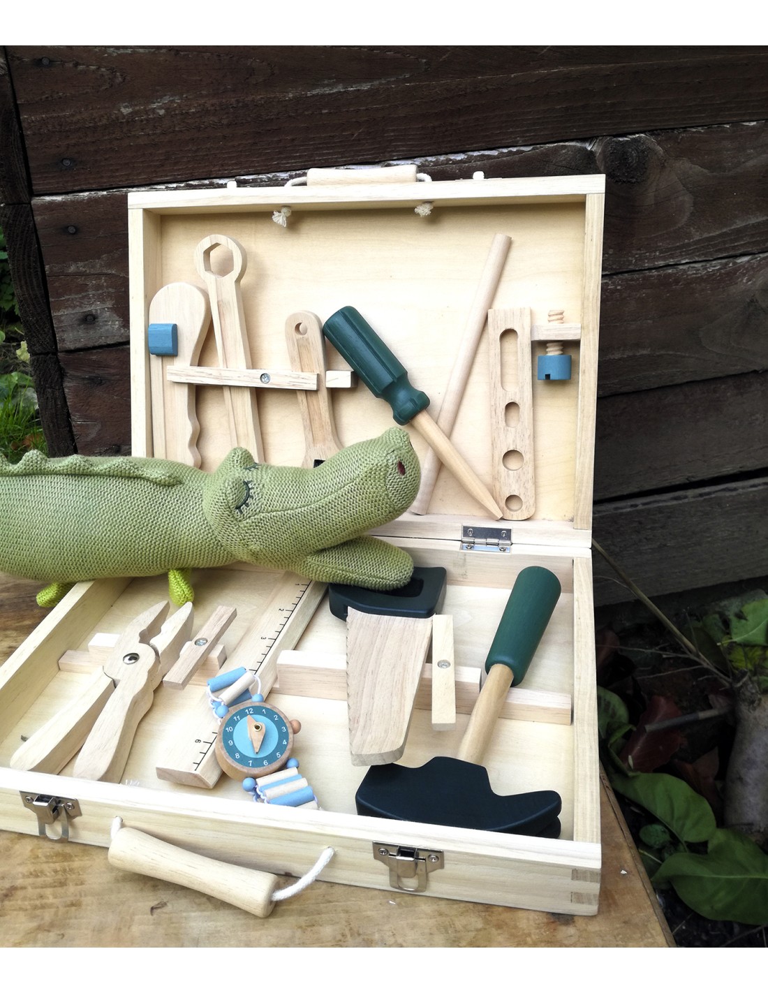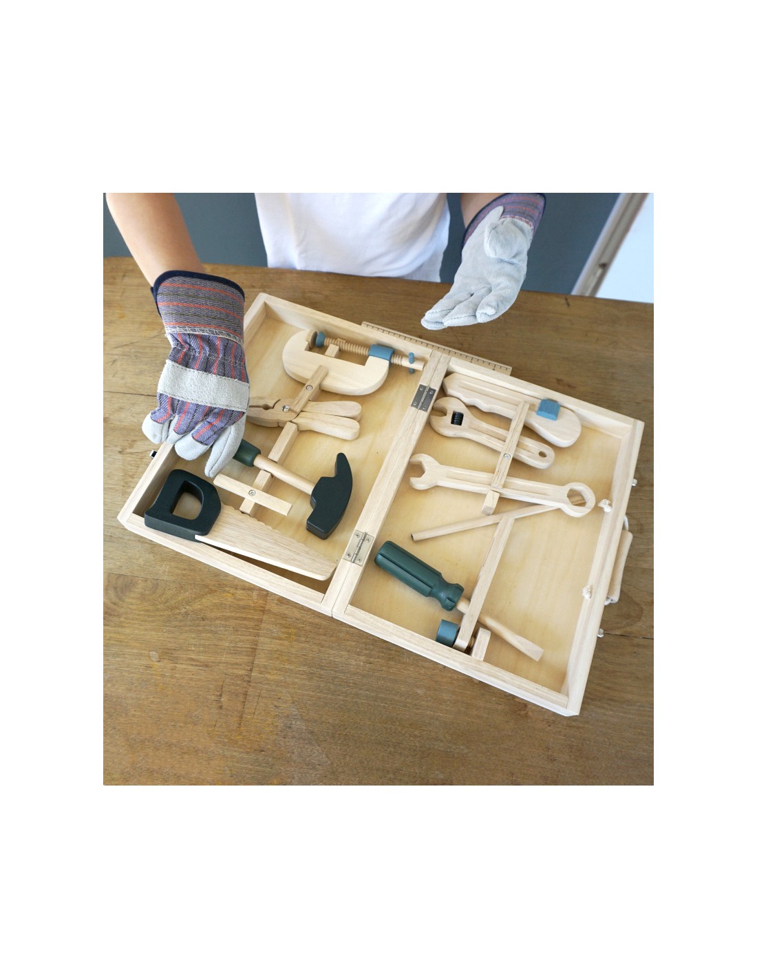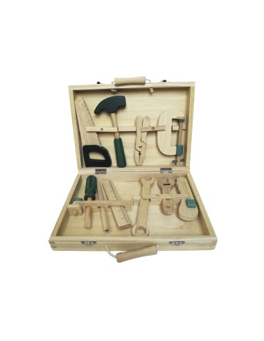 - Caja de herramientas de madera con 12 componentes en su interior.