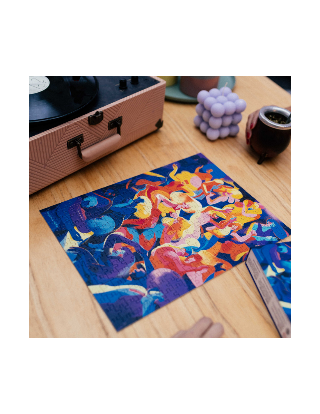Este puzzle de 300 piezas es una colorida ilustración de la artista Eugenia Mello que una vez terminado se puede enmarcar y colgar de la pared de cualquier estancia.