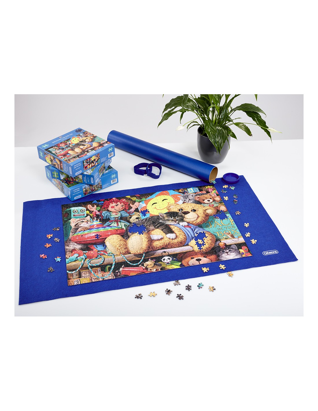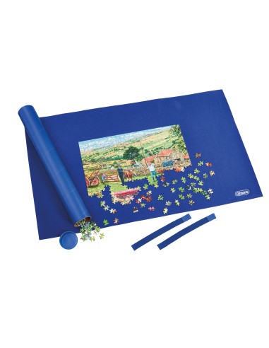 El Puzzle Roll es el compañero de viaje perfecto. Adecuado para cualquier tamaño de rompecabezas de hasta 1000 piezas, The Puzzle Roll es una alfombrilla de rompecabezas de alta calidad que se puede enrollar y transportar con facilidad. Para evitar arrugas, el rollo se presenta alrededor de un tambor de cartón perfecto para guardar las piezas de repuesto durante la transición. ¡Finalmente, las bandas elásticas y de velcro aseguran que todo permanezca en su lugar!