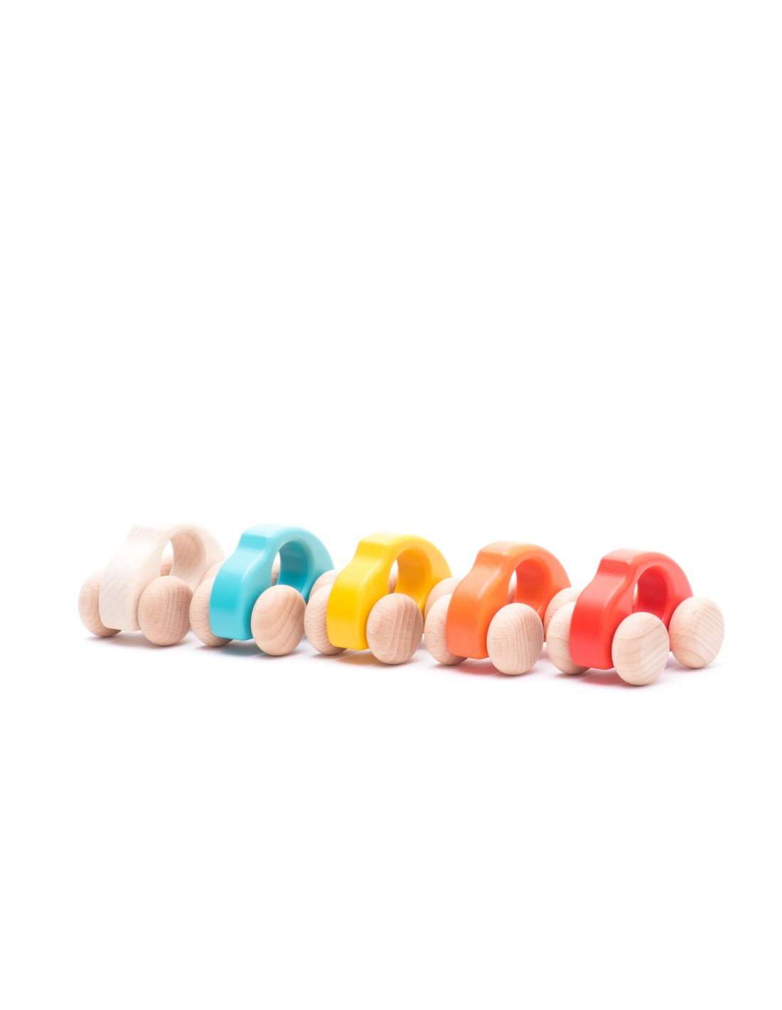 Coche de madera de colores vibrantes con la forma del mítico escarabajo.