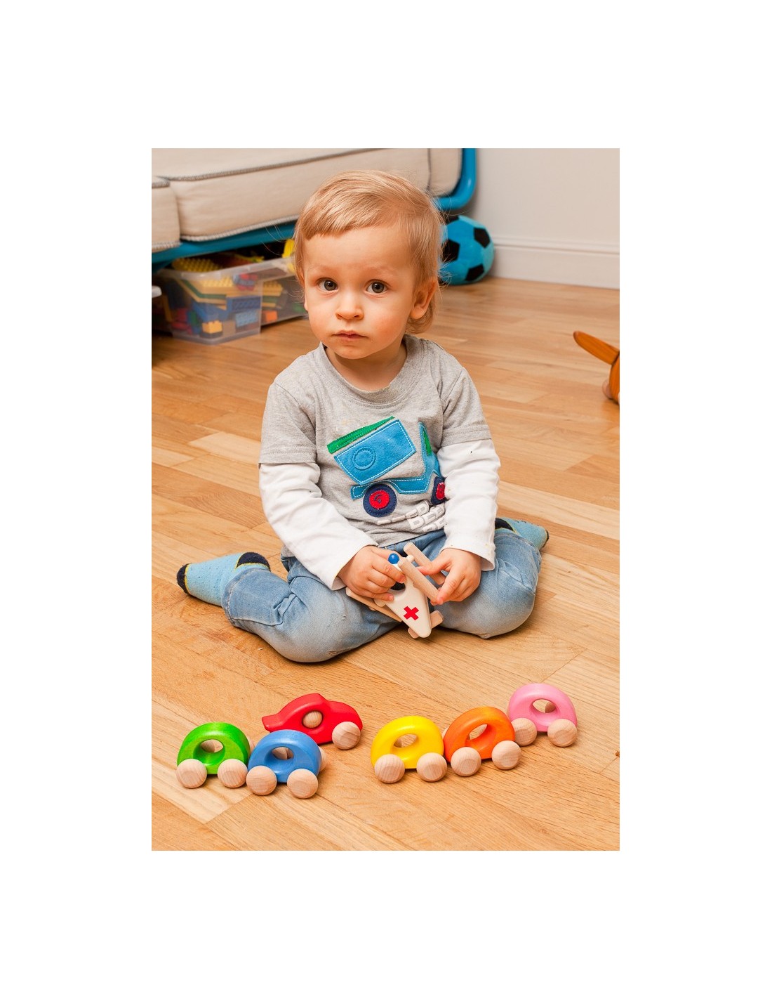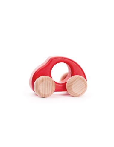 Coche de madera de colores vibrantes con la forma del mítico escarabajo.
