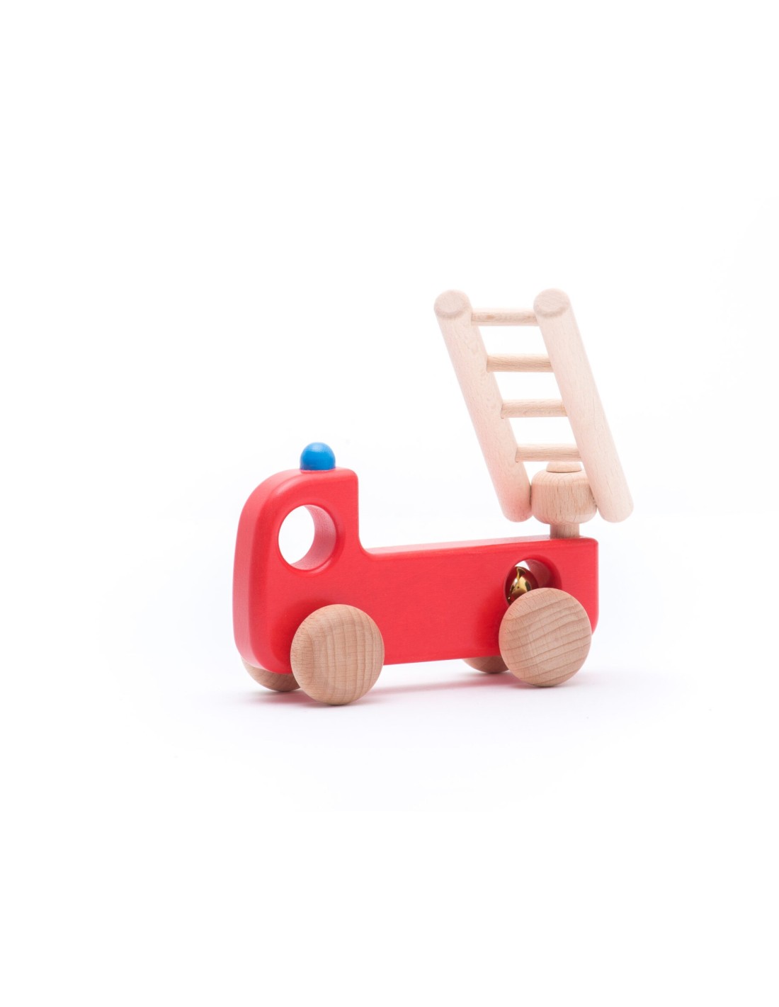 Clásico camión de bomberos con una campanita y una escalera móvil.