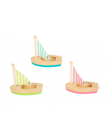Estos tres veleros de madera son adecuados para utilizarlos en la bañera, en piscinas inflables o en cualquier lugar donde haya un poco de agua donde puedan flotar. Las velas pueden ser desenganchadas y atadas de nuevo si es necesario.